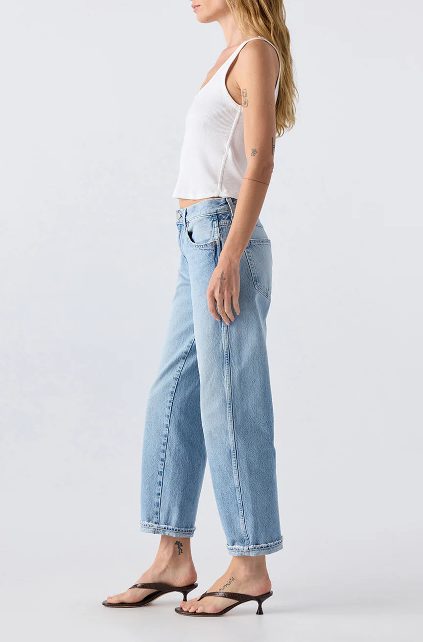 The denim version of our cult classic, Easy Army Trouser, features a relaxed, slightly dropped crotch and crop straight pant with trouser styling. It also includes back and front army patch-style pockets. Easy to wear and effortless to style. Zip fly.
